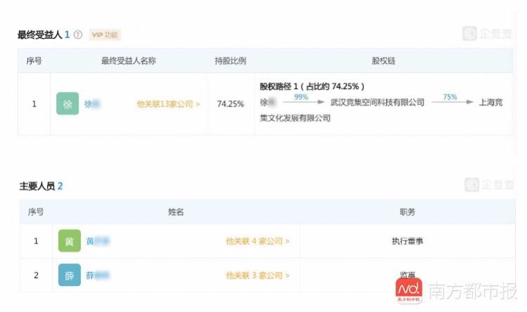 商户T先生向南都记者表示,他和W女士于2018年1月签订了为期3年的《联销经营合同》并支付各类款项共计29.5万元。但经营两个月后,T先生突然发现,W女士和徐某带着办公室的财物资料,收拾行李消失了。南都记者在企查查查询发现,上海竞集文化发展有限公司法定代表人、执行董事为黄某某,薛某某为监事,徐某持股74.25%,为最终受益人。T先生告诉南都记者,黄、薛二人为母女,徐、薛二人为男女朋友。